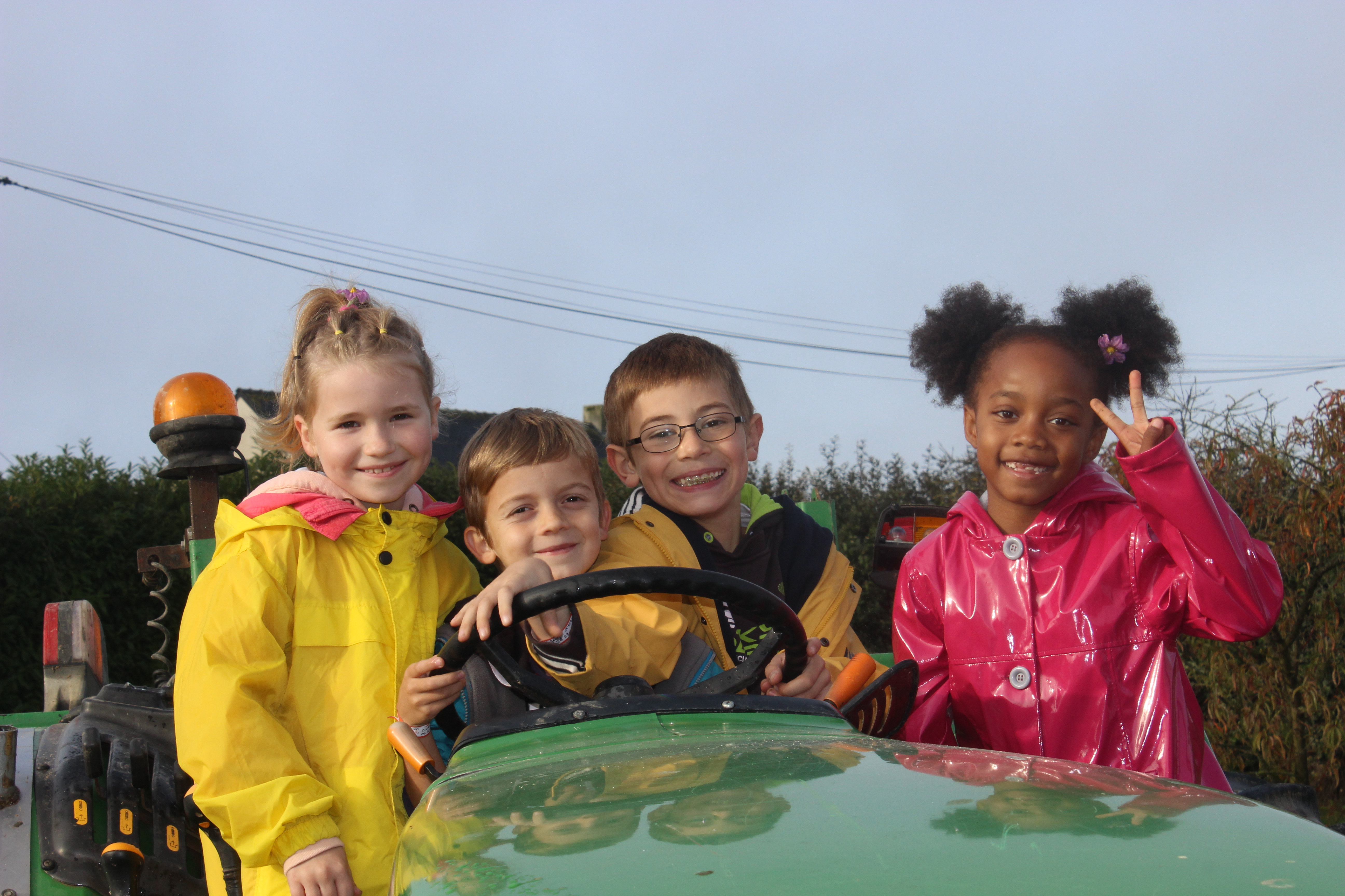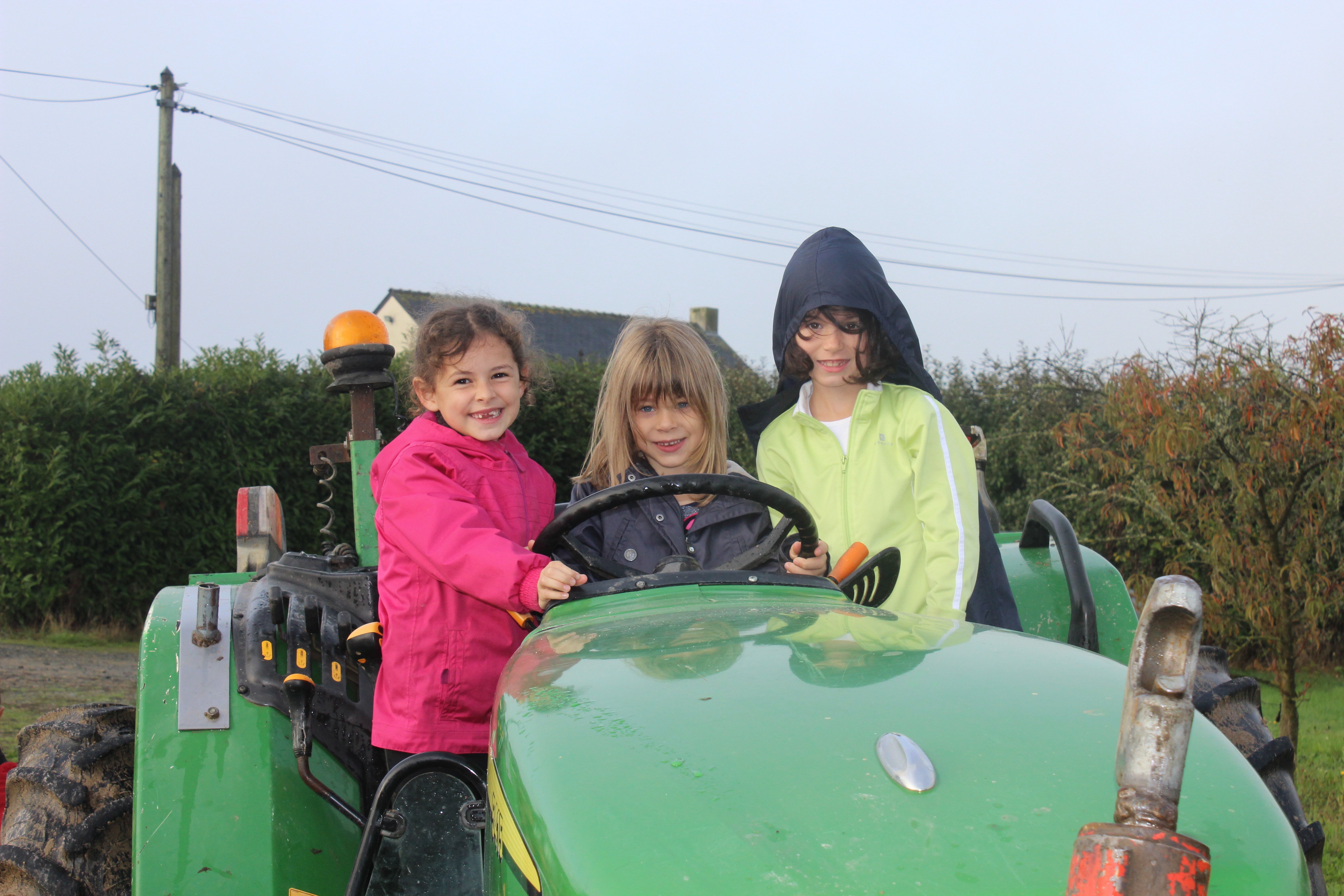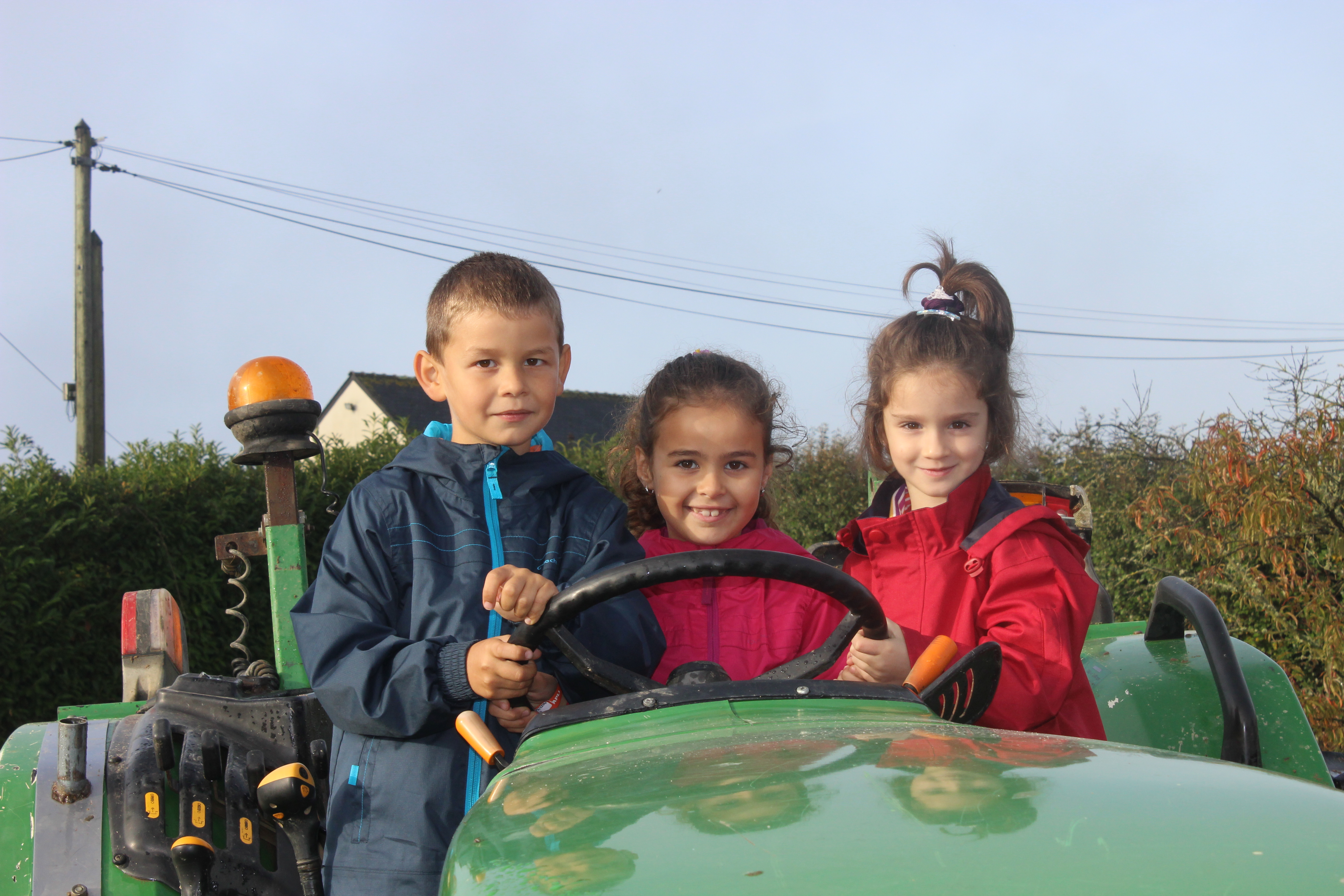 Il nous a d’abord emmener voir les serres sous lesquelles poussaient des tomates, des courgettes et autres légumes. Ensuite, Thierry nous a montré le matériel qu’il utilise pour la récolte de ses légumes. Nous avons tous pu monter et nous faire prendre en photo sur les tracteurs.