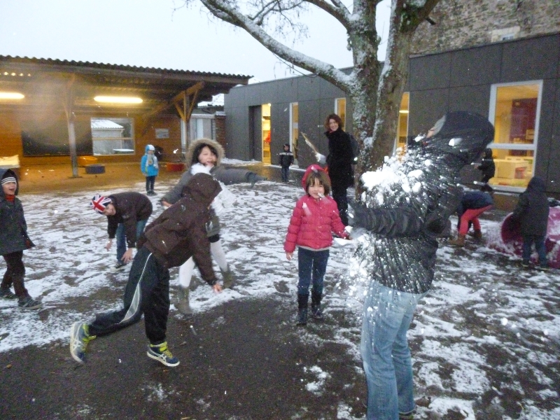 Quelle surprise de voir tomber la neige à la garderie ! Une bataille de neige s’est imposée !