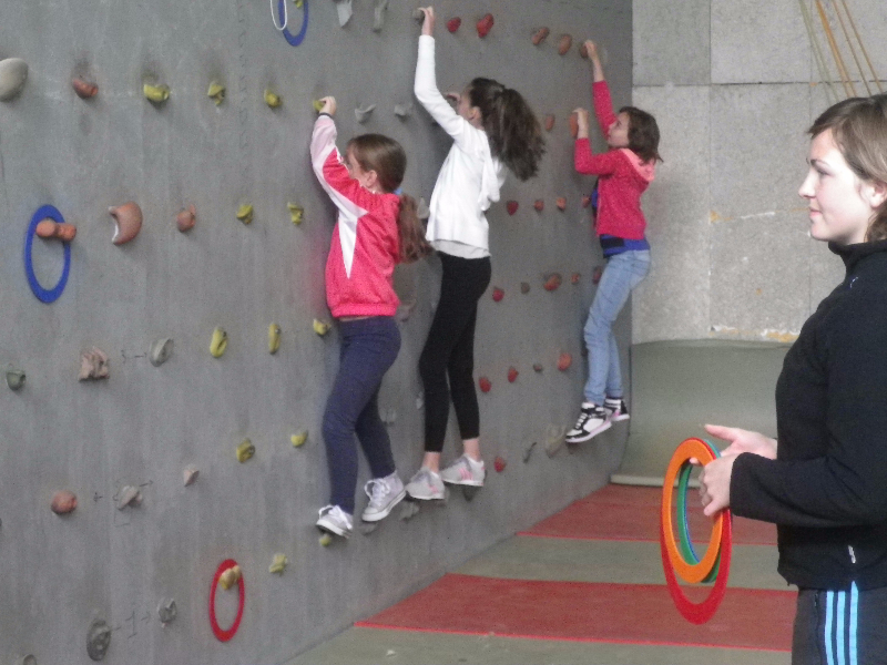 Ce matin, certains groupes ont fait de l’escalade et de la sarbacane. Devant le mur d’escalade, quelques élèves avaient peur de grimper. Rassurés grâce aux conseils de sécurité de Manon, l’animatrice de sport, ces élèves ont réussi à vaincre leur crainte. Ils furent heureux d’y arriver !