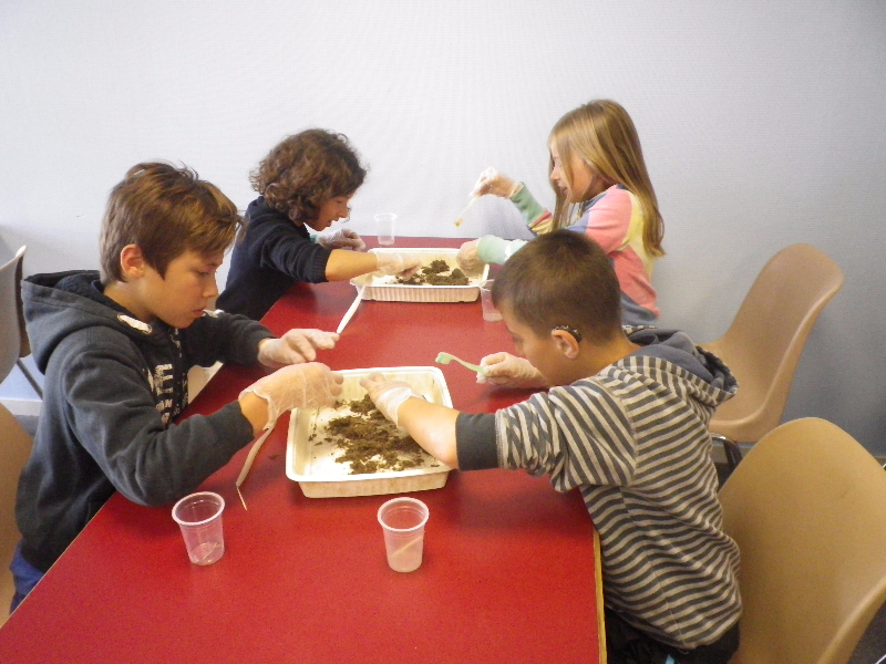 Après un bon repas, selon les groupes, nous avons fait disk-golf, dissection de pelotes de déjection de chouettes ou pêche à la mare.