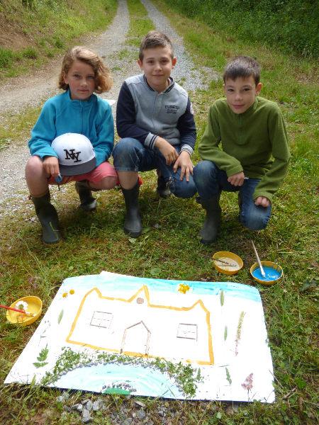 Les autres ont fabriqué des cabanes et réalisé des fresques avec des éléments naturels : terre, feuilles, fleurs… Nous avons construit quatre belles cabanes avec des branches et des herbes.