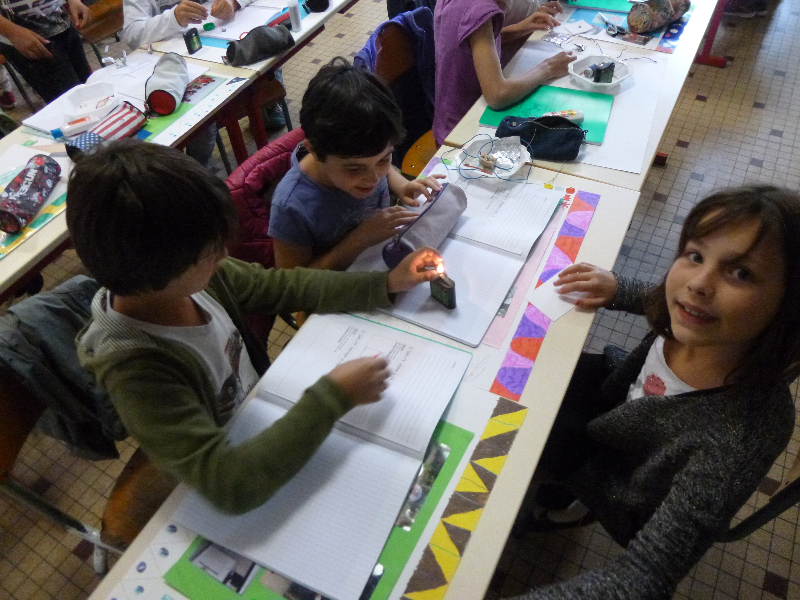 Pendant les séances de sciences, au mois de septembre, nous avons réalisé de petits défis en électricité. Il fallait allumer une ampoule ou un DEL, créer un ventilateur ou tester la conductivité de différents matériaux. Ces défis nous ont beaucoup plu !