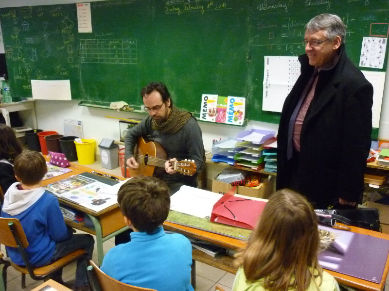 Le directeur diocésain a aussi visité chacune des classes saluant les élèves et l’équipe enseignante et éducative. Il a même fredonné un refrain avec les CM1 !