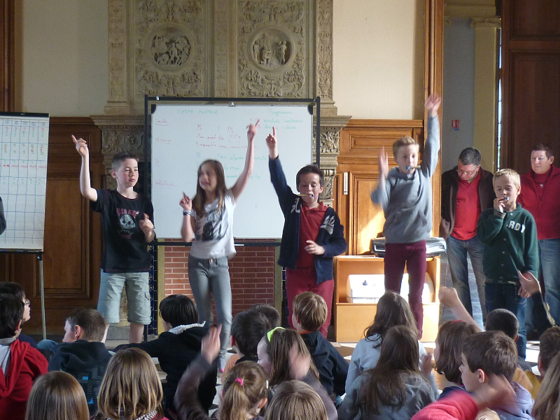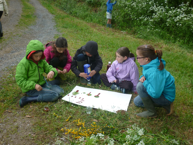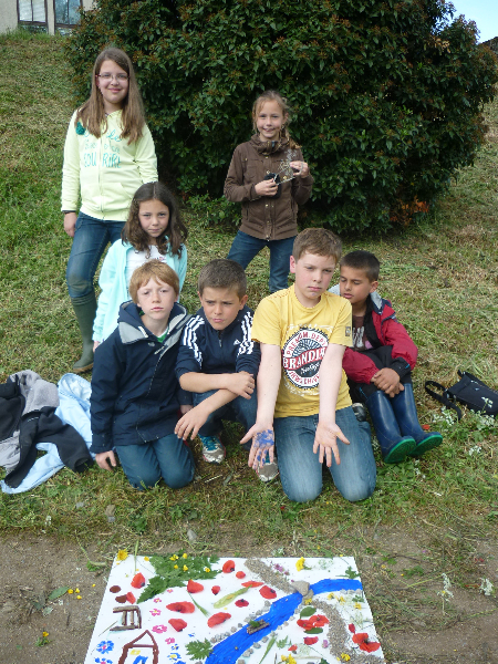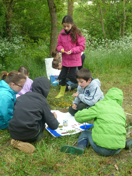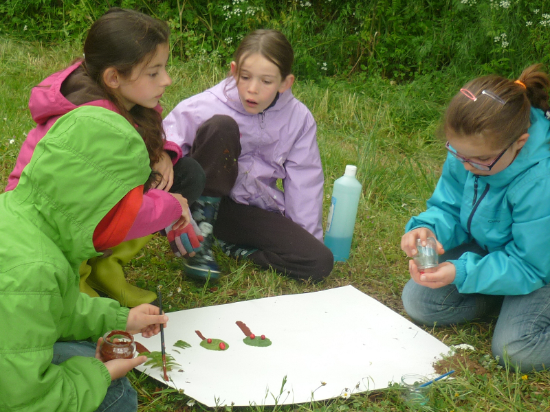 Aujourd’hui nous avons fait une fresque. C’est une maquette naturelle avec de la peinture. Les deux premiers groupes ont eu de la pluie et les derniers ont eu du beau temps mais tout s’est bien passé. Chacun avait une idée de paysage. J’ai adoré.