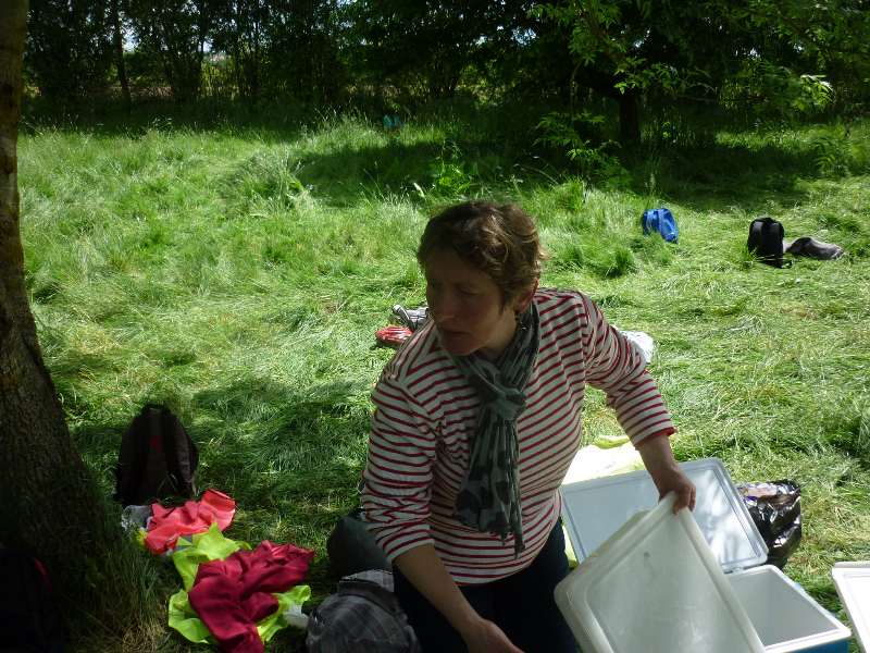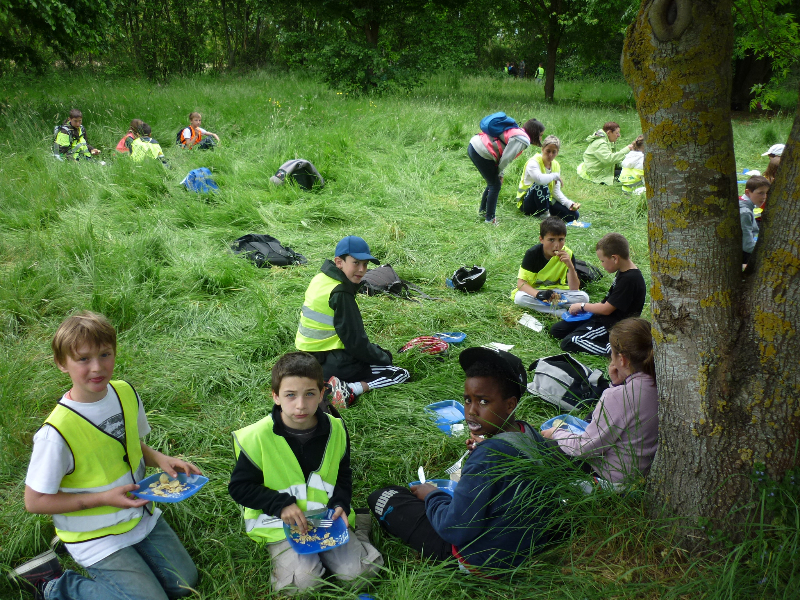 On a pique-niqué au bord de la Loire. Au menu : sandwichs au jambon et au fromage, fromage blanc. Au moment du goûter, certains élèves ont fait du toboggan. A la fin de la journée, les compteurs des vélos affichaient 30 kilomètres. Ce soir, nous allons faire un feu de camp pour la dernière veillée.