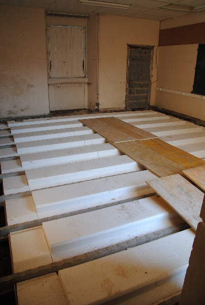 • Retrait du plancher de la salle informatique, remplacé par une dalle béton isolée,